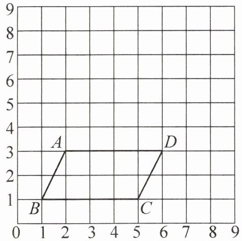 3. (1) 先用数对表示出右图中平行四边形各个顶点的位置,再画出将平行四边形向上平移 5 个单位后的图形。