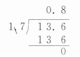 $ \begin{array}{r} 0.8 \\ 1.7 \enclose{longdiv}{13.6} \\ 136 \\ \hline 0 \end{array} $$ (