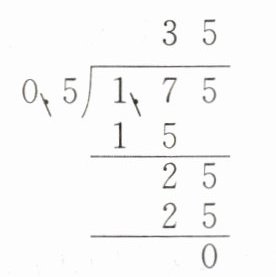 )$ \begin{array}{r} 35 \\ 0.5 \enclose{longdiv}{1.75} \\ 15 \\ \hline 25 \\ 25 \\ \hline 0 \end{array} $$ (×