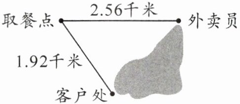 4. 现行《电动自行车安全技术规范》规定:电动自行车最高车速不得超过$25$千米/时。外卖员用了$6.4$分钟到达取餐点取餐(如图)。