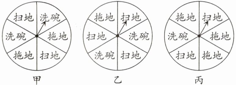 (2)丙 丙转盘上“洗碗”出现的次数最少,转到“洗碗”的可能性最小