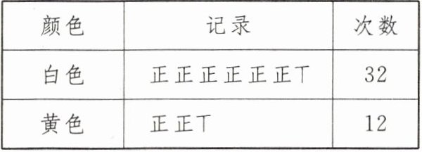 2. 摸出一个乒乓球,记下颜色,再放回去摇匀,颜色统计情况如下表。