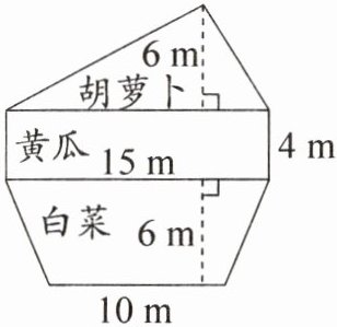 1. 种植大户李大伯在一块多边形的土地上分别种上胡萝卜、黄瓜和白菜(如图)。这三种菜分别占地多少平方米?李大伯这块菜地的面积有多大?