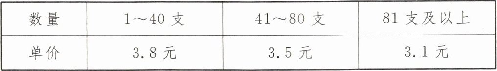 3. 文具批发市场有一种中性笔,买的数量越多,单价越便宜,批发价格如下表。