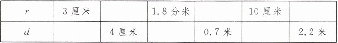 计算半径$r=\frac{d}{2}=\frac{3}{2}=1.5\mathrm{c}\mathrm{m}$。