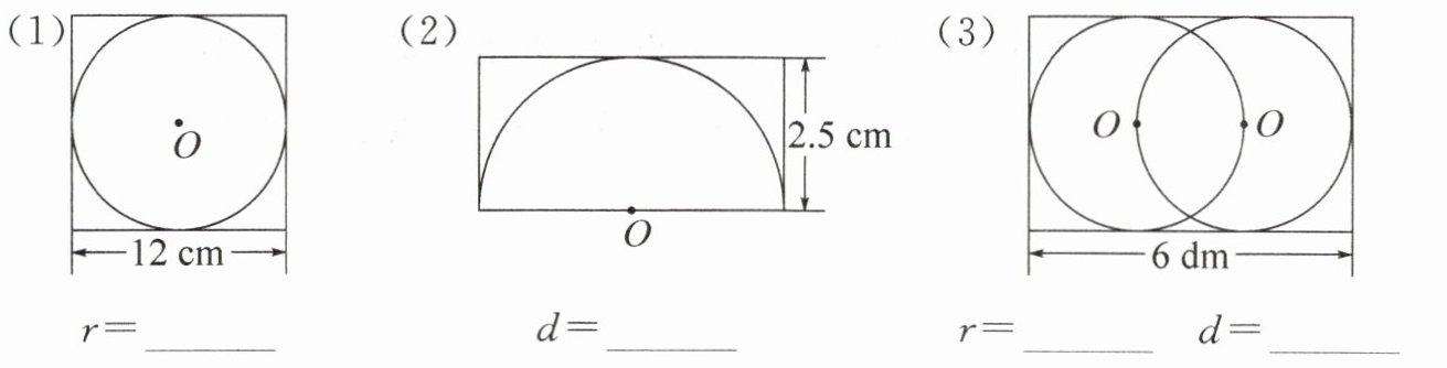 5. 在一个长10厘米、宽4厘米的长方形里,画一个最大的半圆,半圆的直径是( );如果这个长方形的宽是8厘米,则这个半圆的半径是( )。
