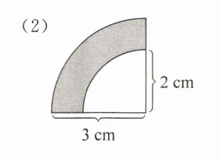 (2)$3.14×(3^{2}-2^{2})×\frac{1}{4}=3.925(cm^{2})$