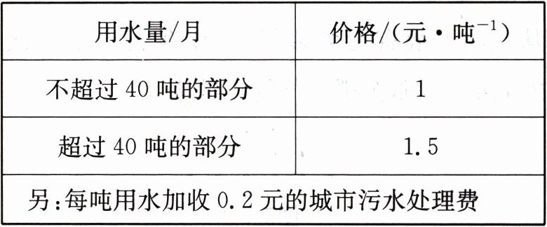 | 用水量/月 | 价格/(元·吨$ ^{-1} $) |