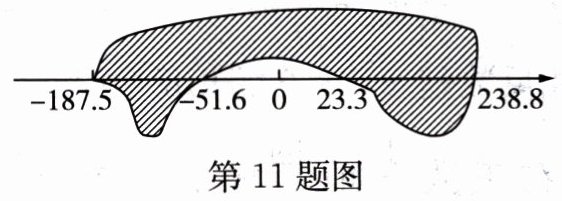 11. 墨水滴在了一个数轴上,如图所示。由图中标出的数值,判断被墨迹盖住的整数共有多少个?有多少对相反数被盖住呢?