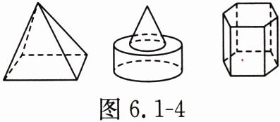 如图6.1-4中的各立体图形的表面由哪些平面图形组成?试指出这些平面图形在立体图形中的位置.