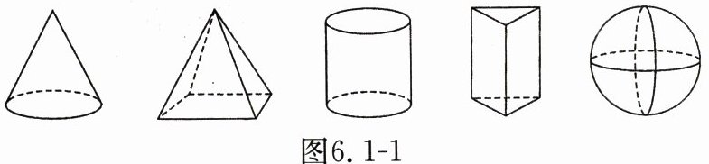 【规范解答】球体、圆锥、圆柱、六棱柱、三棱柱、长方体和正方体. 它们都是立体图形.