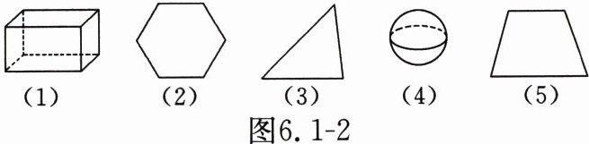 例3 观察图6.1-3,写出你所发现的几何图形的名称,它是立体图形,还是平面图形?