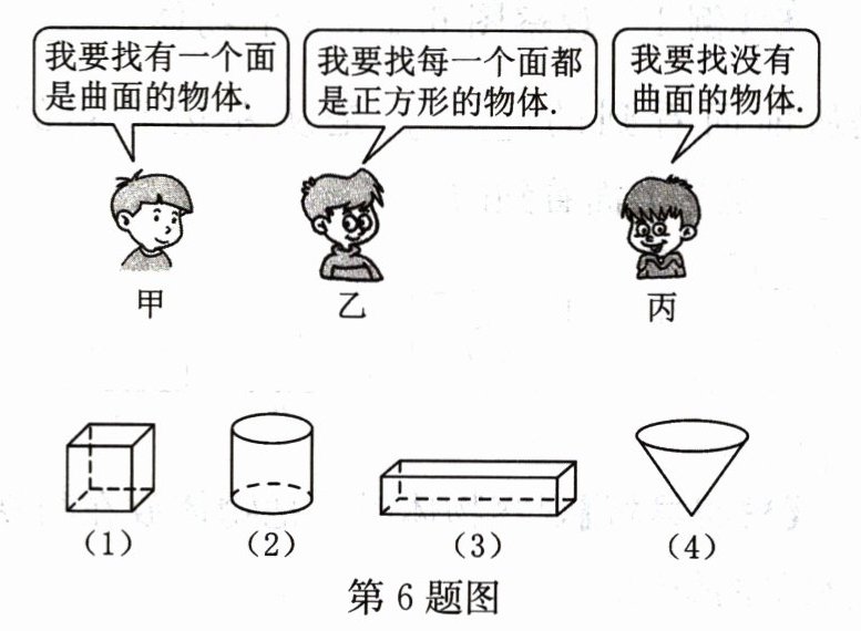 4. 如图,一个有盖的正方体盒子(可密封)里装有六分之一高度的水,改变正方体盒子的放置方式,则盒子里的水不能形成的几何体是(