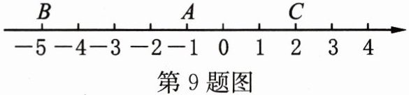 9. 如图,在数轴上有三个点 A,B,C,回答下列问题: