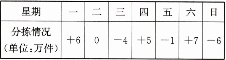 |分拣情况(单位:万件)|+6|0|-4|+5|-1|+7|-6|