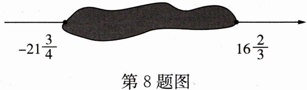 8. 如图,数轴上有一处不小心被墨水淹没了,所标注的数据是墨水边界与数轴相交的点的数据,则被淹没的整数点有