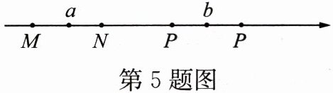 5. 如图,$M$,$N$,$P$,$R$分别是数轴上四个整数所对应的点,其中有一点是原点,并且$MN = NP = PR = 1$。数$a对应的点在M与N$之间,数$b对应的点在P与R$之间,若$\vert a\vert+\vert b\vert = 3$,则原点是(
