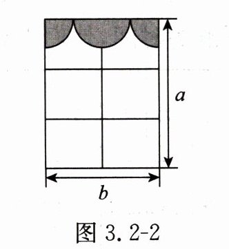 例3 某房间窗户如图 3.2 - 2 所示(图中长度单位:$ cm $),其中上方的装饰物由两个四分之一圆和一个半圆组成(它们的半径相同)。计算:
