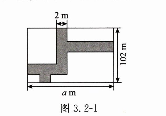 (2)在一块长为 $ a $ m、宽为 $ 102 $ m 的草坪上修筑宽为 $ 2 $ m 的小路(如图 3.2 - 1)。①用代数式表示剩余的草坪的面积为多少平方米? ②当 $ a = 150 $ 时,剩余的草坪的面积为多少?
