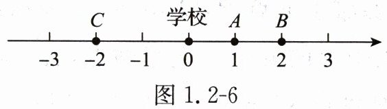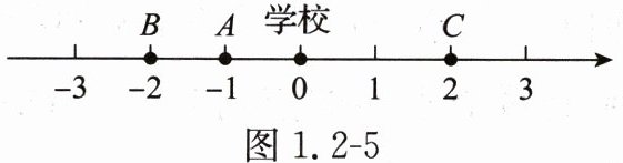 数轴表示:$\cdots\cdots -3\quad -2(B)\quad -1(A)\quad 0(学校)\quad 1\quad 2(C)\quad 3\cdots\cdots$