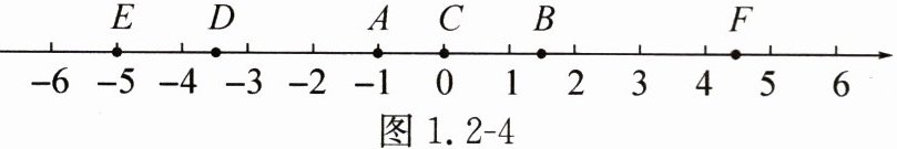 例 2 如图 1.2 - 4,指出数轴上 A,B,C,D,E,F 各点分别表示的数.