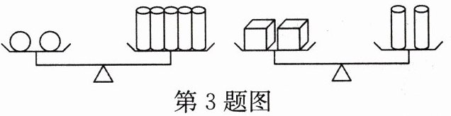 3. 中央电视台某节目中,有一期的题目如图所示,两个天平都平衡,则与$2$个球体相等质量的正方体的个数为(