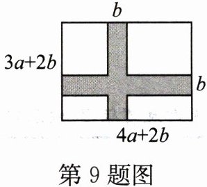 9. 如图,为提高业主的宜居环境,某小区物业准备在一个长为$(4a+2b)$米,宽为$(3a+2b)米的长方形草坪上修建两条宽为b$米的小路,求小路的面积.(要求化成最简形式)