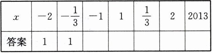 | $ x $ | $ -2 $ | $ -\frac{1}{3} $ | $ -1 $ | $ 1 $ | $ \frac{1}{3} $ | $ 2 $ | $ 2013 $ |
