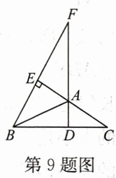 9. 如图,在$\triangle ABC$中,$AD是\triangle ABC$的角平分线,$BE\perp AC交CA的延长线于点E$,交$DA的延长线于点F$.若$\angle ABC= 22^{\circ},\angle C= 34^{\circ}$,求$\angle F$的度数.