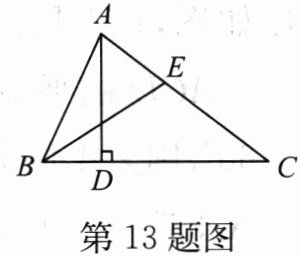 13. 如图,在$\triangle ABC$中,$AD \perp BC于点D$,$BE平分\angle ABC$,若$\angle ABC = 64^{\circ}$,$\angle AEB = 70^{\circ}$. (1)求$\angle CAD$的度数;(2)若点$F为线段BC$上的任意一点,当$\triangle EFC$为直角三角形时,求$\angle BEF$的度数.