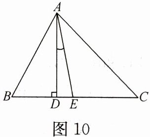 例 5 如图 10,在 $\triangle ABC$ 中,$\angle B = 63^{\circ}$,$\angle C = 51^{\circ}$,$AD$ 是 $BC$ 边上的高,$AE$ 是 $\angle BAC$ 的平分线,则 $\angle DAE= $
