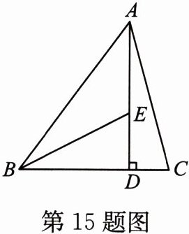 15. 如图,$ AD $ 是 $ \triangle ABC $ 的高,$ BE $ 平分 $ \angle ABC $ 交 $ AD $ 于点 $ E $。若 $ \angle C = 76^{\circ} $,$ \angle BED = 64^{\circ} $,求 $ \angle BAC $ 的度数。