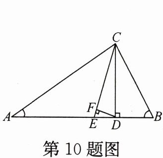 10. 如图,在 $ \triangle ABC $ 中,$ \angle A = 40^{\circ} $,$ \angle B = 72^{\circ} $,$ CE $ 平分 $ \angle ACB $,$ CD\perp AB $ 于点 $ D $,$ DF\perp CE $,则 $ \angle CDF = $