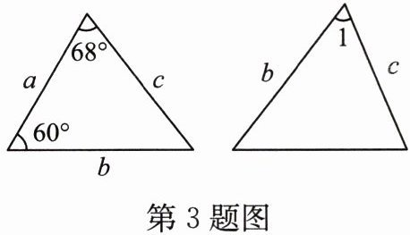 3. 如图是两个全等三角形,图中的字母表示三角形的边长,则$\angle 1$的度数为