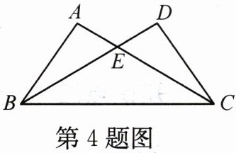 4. 如图,$\triangle ABC\cong\triangle DCB$, 若 $AC = 7$,$BE = 5$,则 $DE$的长为