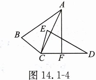 如图,14.1 - 4,$\triangle ABC\cong\triangle DEC$,点 $A$和点 $D$是对应顶点,点 $B$和点 $E$是对应顶点,过点 $A$作 $AF\perp CD$,垂足为 $F$,若$\angle BCE = 65^{\circ}$,则$\angle CAF$的度数为(