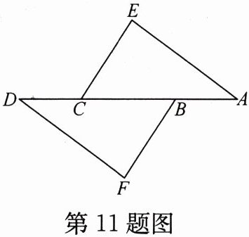 11. 如图,$\triangle ACE\cong\triangle DBF$,$AE = DF$,$CE = BF$,$AD = 10$,$BC = 2$。