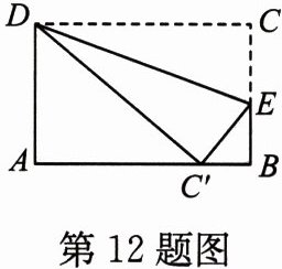 12. 如图,将长方形 $ABCD$沿 $DE$折叠,使点 $C$恰好落在 $BA$边上,得到点 $C'$,若$\angle C'EB = 40^{\circ}$,求$\angle EDC'$的度数。