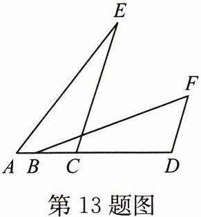 13. 如图,点 $A$,$B$,$C$,$D$在同一条直线上,点 $E$, $F$是直线 $AD$上方的点,连接 $AE$,$CE$,$BF$, $DF$,若$\triangle ACE\cong\triangle FDB$,$FD = 3$,$AB = 8$。