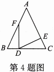 4. 如图,在△ABC中,∠B= ∠C,BF= CD,BD= CE,若∠FDE= 65°,则∠A=