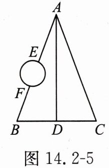 如图14.2-5,A,B,C,D是四个村庄,B,D,C在一条东西走向公路的沿线上,BD= DC= 1km,村庄A和C之间、A和D之间都有公路相连,且公路AD是南北走向,AC= 3km,只有A和B之间由于间隔了一个小湖,所以无直接相连的公路. 现决定在湖面上造一座斜拉桥,测得AE= 1.2km,BF= 0.7km,则建造的斜拉桥长至少为
