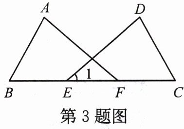 3. 如图,点E,F在BC上,BE= CF,AB= DC,∠B= ∠C. 若∠A= 80°,∠C= 60°,则∠1=