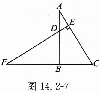 例2 如图14.2-7,在Rt△ABC中,∠ABC= 90°,点D在边AB上,且DB= BC,过点D作EF⊥AC,且EF交AC于点E,交CB的延长线于点F. 求证:AB= BF.