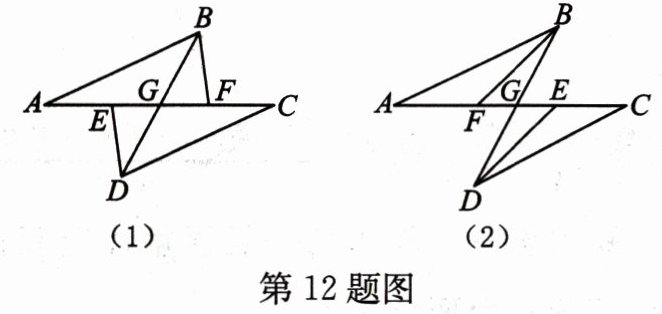 12. 如图,E,F分别为线段AC上的两个动点,且AB= CD,AE= CF,BD交AC于点G.