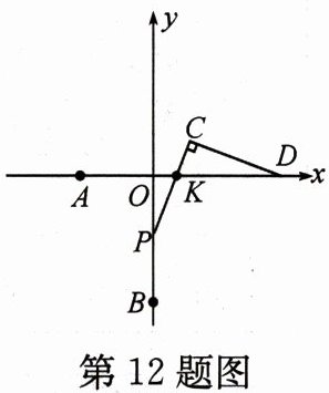 12. 如图,已知$A(-2,0)$,$B(0,-4)$,$C(1,1)$,点$P为线段OB$上一动点(不包括点$O$),$CD\perp CP$,$CD交x轴于点D$,$CP与x轴交于点K$。当点$P$运动时: