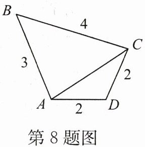 8. 四边形 ABCD 各边的长如图所示,对角线 AC 的长度随四边形形状的改变而变化。当△ABC 为等腰三角形时,对角线 AC 的长为(