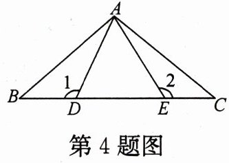 4. 如图,BE = CD,AE = AD,∠1 = ∠2,∠2 = 100°,∠BAE = 60°,则∠CAE 为(