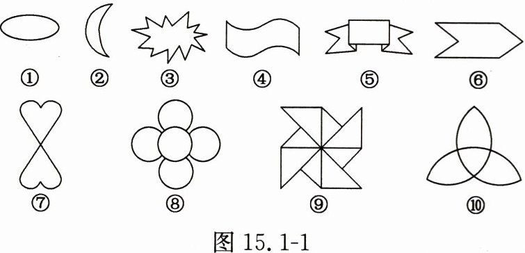 例 1 如图 15.1 - 1,判断下列图形是否为轴对称图形,若是,说出它们有几条对称轴.