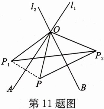 11. 如图,直线 $ l_1 $,$ l_2 $ 相交于点 $ O $,点 $ P $ 关于 $ l_1 $,$ l_2 $ 的对称点分别为 $ P_1 $,$ P_2 $.