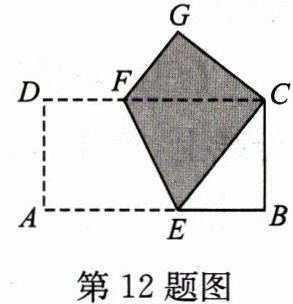 12. 如图,将长方形纸片 $ ABCD $ 沿 $ EF $ 折叠,使点 $ A $ 与点 $ C $ 重合,点 $ D $ 落在点 $ G $ 处,$ EF $ 为折痕.